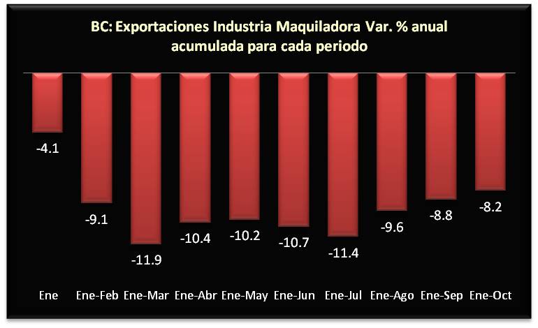 Exportaciones de las maquiladoras en BC suman diez meses en terreno negativo