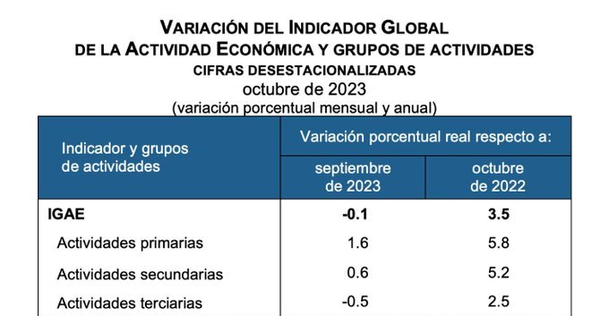 Actividad económica del país con marginal disminución de 0.1% en octubre