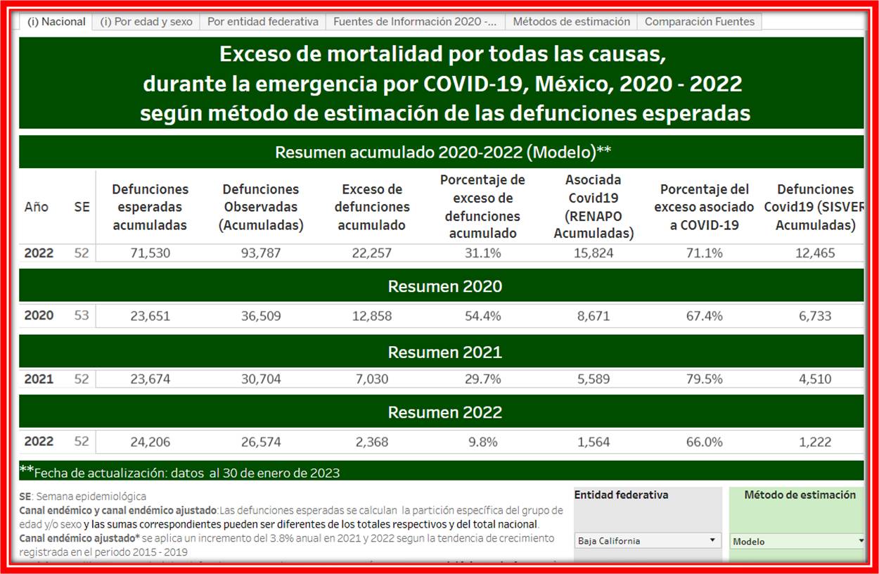 Exceso de mortalidad en BC supera los 22 mil muertos, 71% por COVID-19; hay un subregistro de más de 3 mil por la pandemia