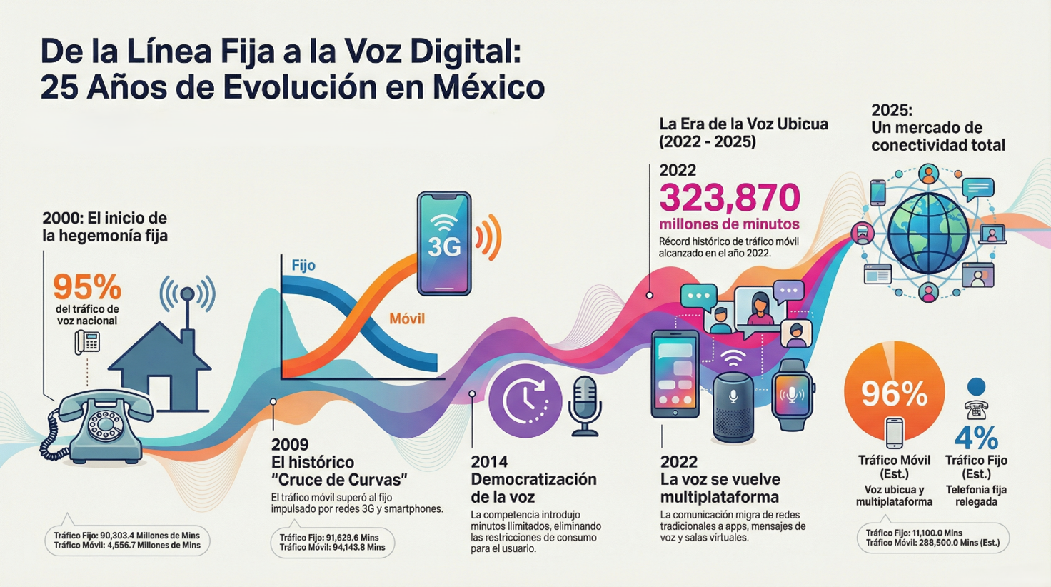 Por primera vez, el tráfico en telefonía móvil superó al generado en redes fijas